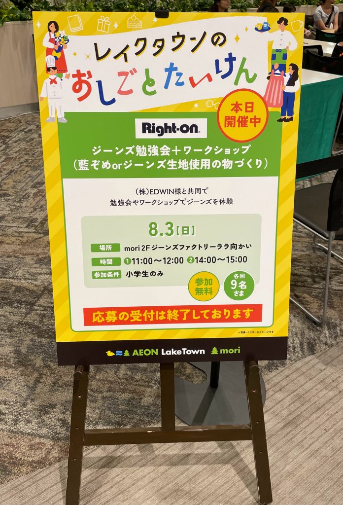 夏休み期間中におしごと体験イベントを埼玉県越谷市イオンレイクタウン店にて開催しました。未就学児から小学生がライトオンの販売員となり、ジーンズについての勉強会で知識と、働く楽しさを知ってもらう機会を提供しました。